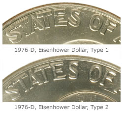 There are also two variety types for this 1776-1976 coin. The most noticeable difference between the two can be seen by the naked eye: