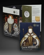 The presentation folder with coin can be ordered online through the British Royal Mint page, 2008 Elizabeth I Anniversary Crown Presentation Folder. Phone orders should be directed to 0845 60 88 222.