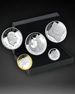 The Family Silver Collection includes two crowns celebrating the 60th birthday of His Majesty The Prince of Wales and the 450th anniversary of the accession of Queen Elizabeth I, the Britannia £2 coin with its brand new design, the £2 coin commemorating the centenary of the London Olympic Games and the £1 coin bearing the Royal Arms on the occasion of the coin’s 25th anniversary.