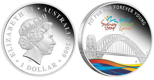 The 2009 World Masters Games will be held in Sydney, Australia. Twenty Eight different sports will be a part of the competition ranging from archery, to touch football, to weightlifting and to golf. The motto "Fit, Fun & Forever Young" is the chosen theme, which is also depicted on the Australian coins.