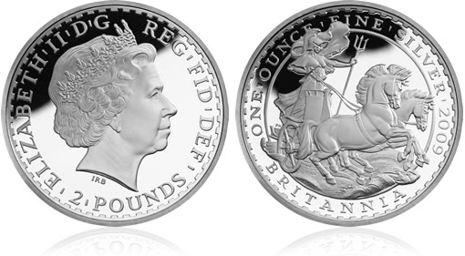 The British Royal Mint has released the 2009 UK Britannia Four Coin Silver Proof Set which includes a £2 coin, a £1 coin, a 50p coin and a 20p coin. Making this collection unique is the fact that for the first time an image of Britannia is accompanied by a portrait of the current Queen on a silver proof set.