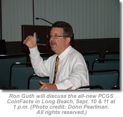 The Meet the Expert sessions with Hall will be held on Thursday and Friday, September 10 and 11, from 1 p.m. to 3 p.m. at the PCGS booth. Informative, educational sessions about the new PCGS CoinFacts also will conducted on those days by Ron Guth, PCGS CoinFacts President, at 1 p.m. in room 101-B.