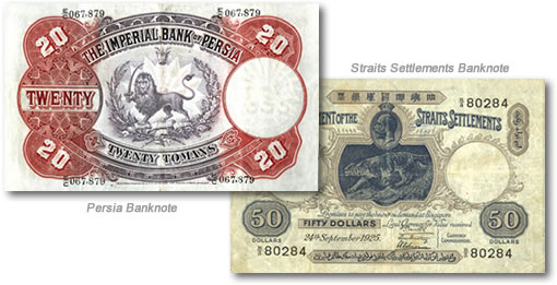 More impressive notes will be displayed from countries of the British Commonwealth with a lovely selection of Straits Settlements highlighted by a Pick 12a Fifty Dollar note in an attractive Fine grade.