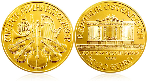 On 16th October this year a limited quantity of 6,027 Vienna Philharmonic coins, each weighing 20 ounces of fine gold, will go on sale in Europe, America and Japan.