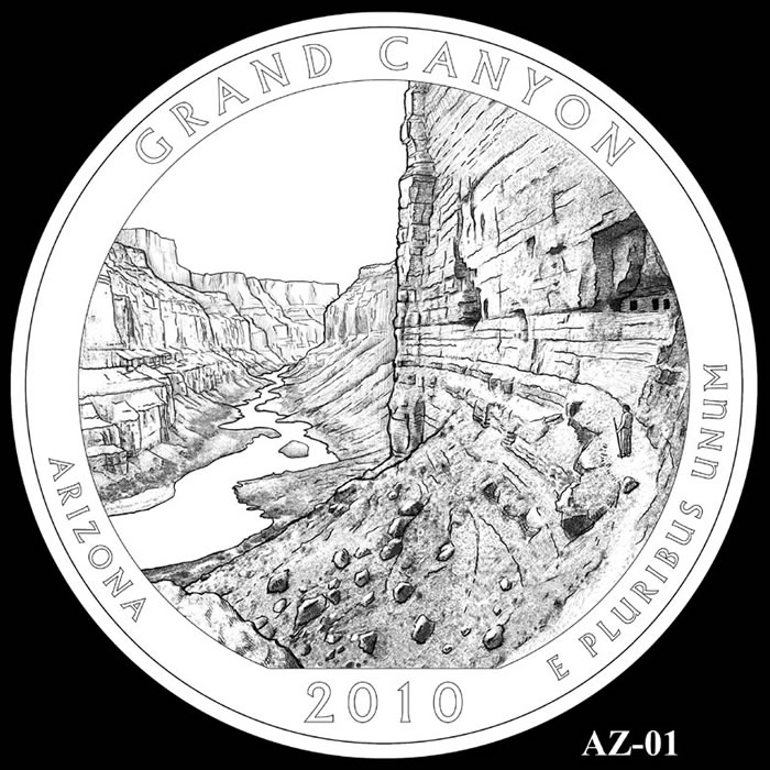 Citizens Coinage Advisory Committee – "For the coin portraying Grand Canyon National Park in Arizona, the Committee narrowly prefers design 1, featuring a canyon-level view of the granaries above the Nankoweap Delta, over design 4, which features an aerial view of the canyon. Both were considered to be powerful images, with design 1 preferred for its more immediate, human-scaled view of the canyon."