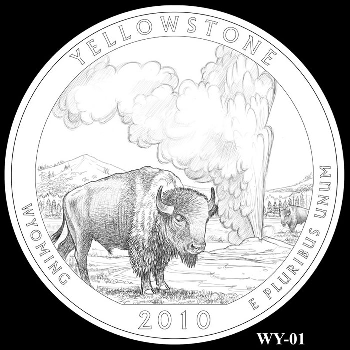 Citizens Coinage Advisory Committee – "For the coin portraying Yellowstone National Park in Wyoming, the Committee strongly prefers design 1, showing Old Faithful geyser with bison in the foreground and background. Members felt that design 1 would work well on a small coin, and that the depiction of animal life enhanced the design."