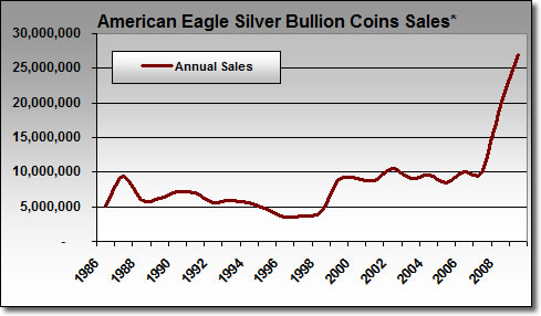 *Annual Silver Eagle Bullion Coin Sales up from 1986 through to Dec. 7, 2009
