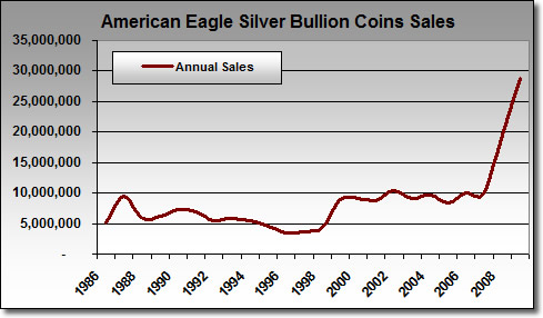 Annual American Silver Eagle Bullion Coin Sales: 1986-2009