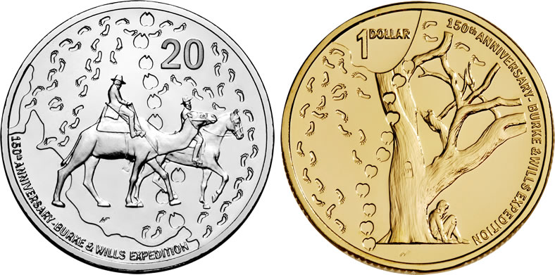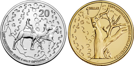 The Royal Australian Mint’s 2010 Burke and Wills Expedition 150th Anniversary 20c and $1 Coins – CLICK TO ENLARGE