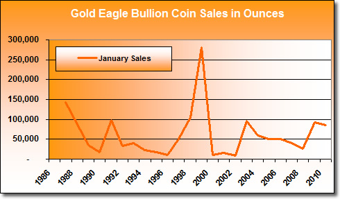 Gold Eagle Bullion Coin Sales: January (1986-2010)