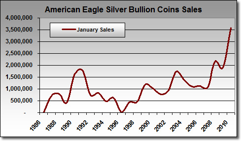 Silver Eagle Bullion Coin Sales: January (1986-2010)