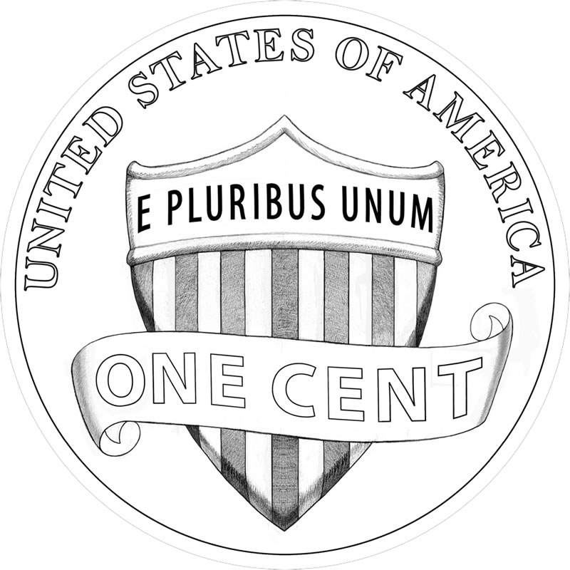 The new Lincoln "Preservation of the Union" penny is emblematic of President Lincoln’s "preservation of the United States of America as a single and united country." The reverse features a union shield with a scroll draped across it bearing the inscription E PLURIBUS UNUM. The 13 vertical stripes of the shield represent the states joined in one compact union to support the Federal government, represented by the horizontal bar above.