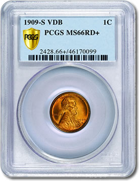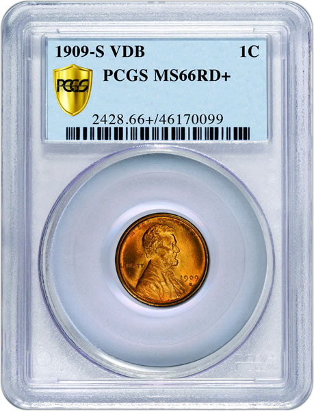 CLICK TO ENLARGE: A 1909-S V.D.B. Lincoln cent graded MS66+ Red under the new PCGS Secure Plus service. (Photo courtesy of PCGS.)
