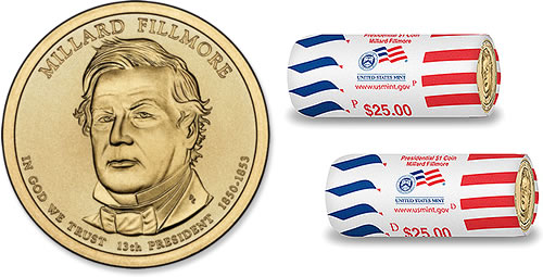 The Millard Fillmore $1 is the 13th coin released in the series honoring U.S. Presidents. It is the first for 2010 and follows the Zachary Taylor coin that launched on November 19, 2009. The next coin in the series features President Franklin Pierce. (See 2010 Presidential Dollar release dates.)