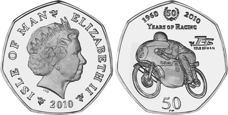 Pobjoy Mint is delighted to announce that on Tuesday, April 20, 2010, representatives of the Isle of Man Government and members of the Suzuki GB team, including the famous TT motorcyclist Bruce Anstey, visited the Mint to officially launch a 50 pence coin to commemorate 50 Years of Racing by Suzuki.