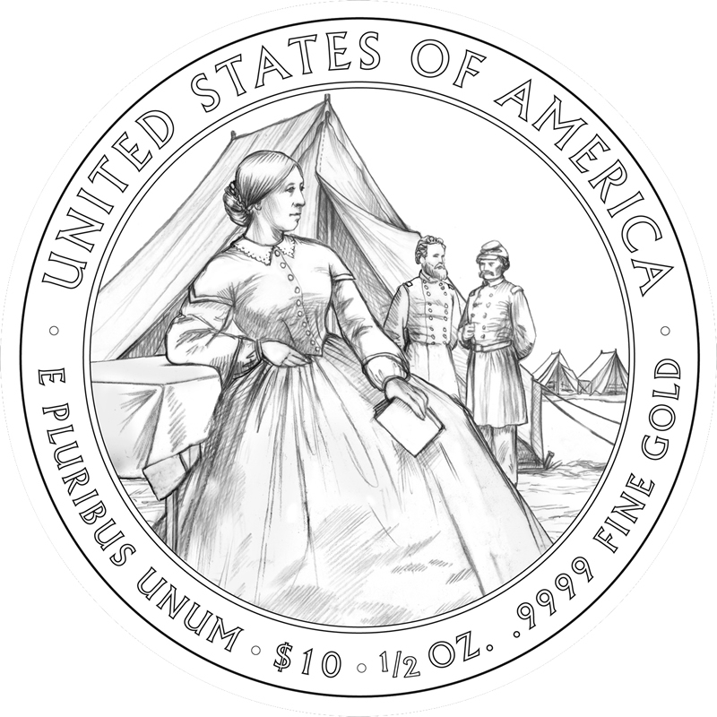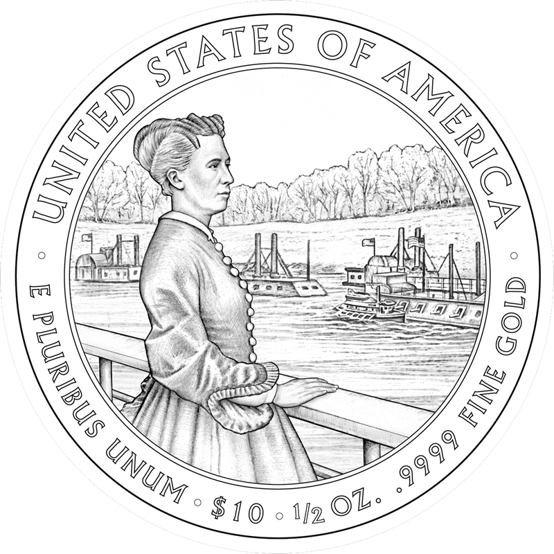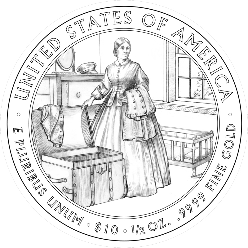 The CFA had five possible reverse designs to select from, with each showing a traveling or military related scene. Julia often accompanied her husband to the various military posts he was assigned.