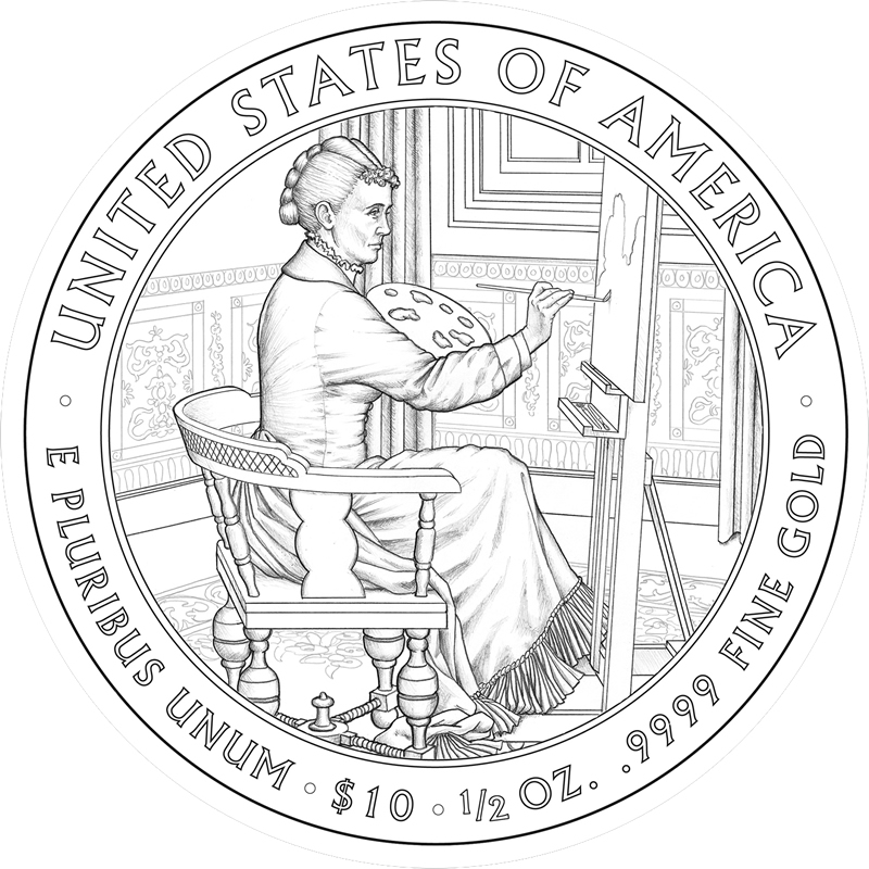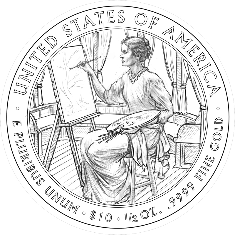The reverse themes were varied, with the CFA noting the degree of research and details involved in their creation. The commission recommended design #5, which depicts Lucretia in a seated position while painting. They did suggest simplifying aspects of the it, pointing out that the window curtains in the background should be eliminated.