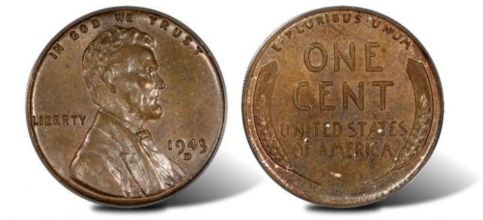Zinc-coated steel was used for producing cents in 1943 to conserve copper for other uses during World War II, but a small number of coins were mistakenly struck on bronze planchets left over from 1942.