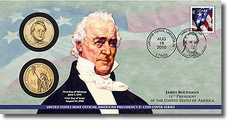 The United States Mint on Thursday, September 30, 2010, placed the James Buchanan Presidential $1 Coin Cover on sale at a price of $15.95.