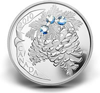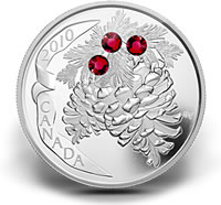 - a 99.99% pure silver Holiday Pinecones coin enhanced with ruby-colored crystals;
