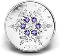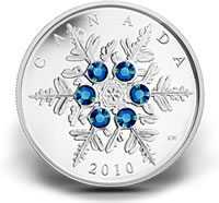 In another twist for 2010, this coin is available in a choice of soft blue Moonlight or Ruby crystals. These coins are limited to a mintage of 5,000 each world-wide and retail for $99.95 CDN.
