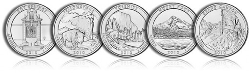 The 2010 America the Beautiful Quarters Circulating Coin Set is listed for $9.95, plus the Mint’s standard shipping and handling charge of $4.95 per order.
