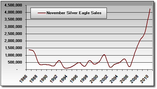 Silver Eagle Bullion Coin Sales: November 1986-2010