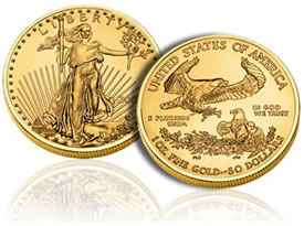 The 2010 Gold Eagle bullion coin should not be confused with 2010 Proof Gold Eagles which went on sale on October 7. United States Mint bullion coins do not have collector proof finishes and they also do not have the West Point “W” mintmark. Additionally, the Mint does not sell bullion coins directly to the public like it does with proof eagles or other collector coins. Instead, the Mint uses a network of Authorized Purchasers who buy bullion eagles in quantity, and then resell them for a small premium over the current gold spot price.