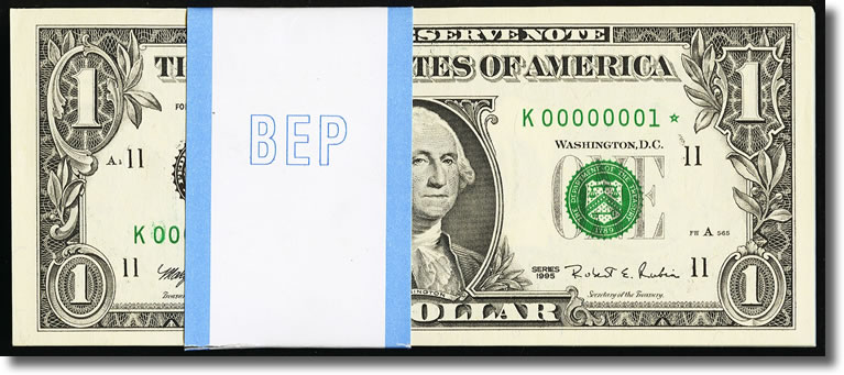 Also included in the auction is a Low Serial Number Low Serial Number Fr. 1922-K* $1 1995 Federal Reserve Note Original Pack of 100 with serial numbers 1 through 100 that is Superb Gem Crisp Uncirculated. The pack is estimated to realize $50,000 to $75,000.