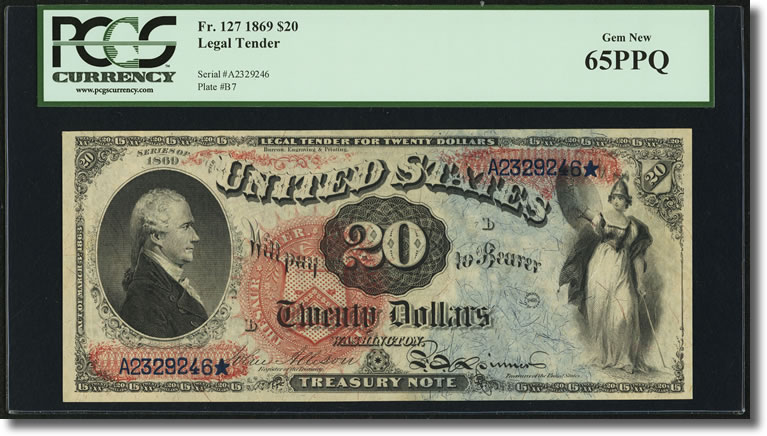 Large Size type notes and Federal Proofs follow in session three, starting at 6 p.m., Jan. 7, 2011. The R.J. Bradley Collection andMenlo Park Collections anchor this session, with many of the high grade, popular type notes being offered from the Menlo Park holdings. Among the collection’s holdings is a Fr. 127 $20 1869 Legal Tender in PCGS Gem New 65PPQ, one of only two Gems to be offered in the last two years.