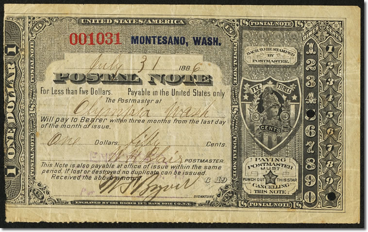One, starting at 6 p.m. Eastern, on Thursday, Jan. 6, 2011, features The Nicholas J. Bruyer and Dee Panda Collections. Mr. Bruyer assembled one of the most extensive collections of U.S. Postal Notes and it was his articles and research over the last few decades that advanced the collecting community’s knowledge of these notes. The collection includes many notes that are unique for the location and a unique Washington Territorial Note.