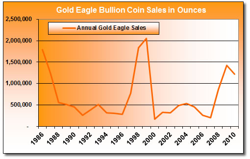 Annual Gold Eagle Bullion Coin Sales: 1986-2010