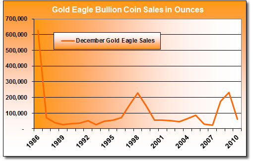 December Gold Eagle Bullion Coin Sales: 1986-2010