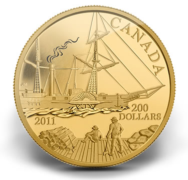 While only pieces of the Beaver survive at the Vancouver Maritime Museum, the Mint has restored the ship to its full glory on the 2011 22-Karat gold coin. This proof-quality gold coin, featuring laser-etched enhancements to the S.S. Beaver design by artist John Mardon, is limited to a mintage of 2,800 and retails for $1,079.95 CDN.