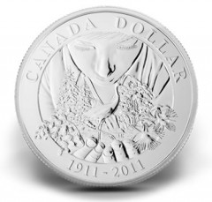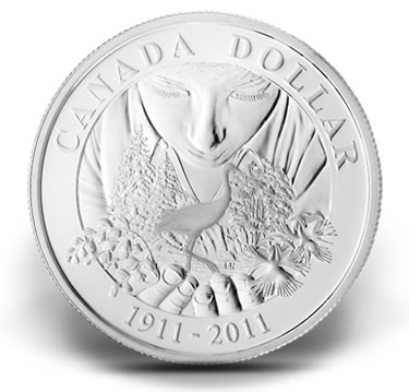 Limited to a mintage of 40,000, the 2011 Proof Silver Dollar is available for $55.95 CDN. The brilliant uncirculated version of this coin also retails for $49.95 CDN and is limited to a mintage of 25,000. Only 55,000 Proof Sets are available world-wide with a retail price of $114.95 CDN.