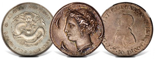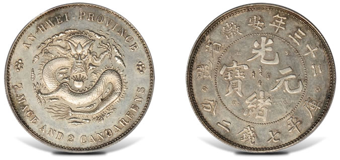 Leading in Chinese coinage was lot 827, a highly significant 1897 Anhwei Province Pattern Dollar in a PCGS MS-62 holder which went to the winning bidder for a remarkable $330,400.
