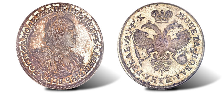 High quality Russian coins are always highly sought-after and a Choice Uncirculated Peter I Rouble 1720, MS64 NGC did not disappoint as it rose amidst steady budding to finish the auction at $57,500.