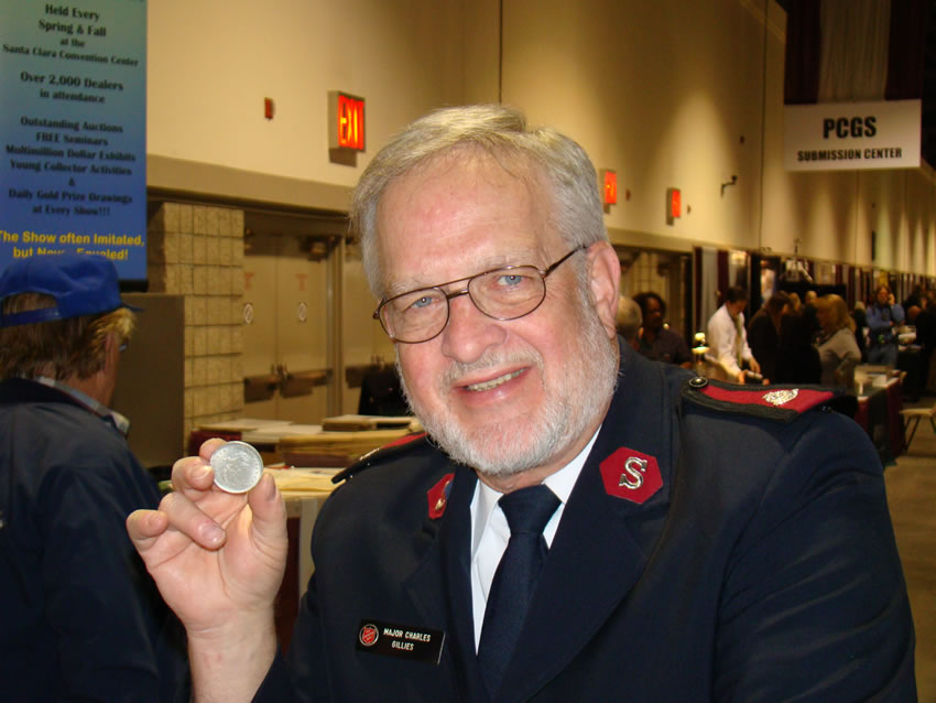 After seeing a local newspaper report about the Long Beach Expo, Major Chuck Gillies of the Whittier, California Corps of the Salvation Army went to the show on Thursday, February 3, carrying what he thought might be a multi-million dollar rare coin.
