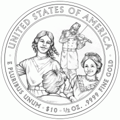 The US Mint will issue collector proof an uncirculated versions. Each is struck in 1/2 ounces of 24 karat, .9999 fine gold. The new designs also will be featured on 1-5/16″ bronze medals.