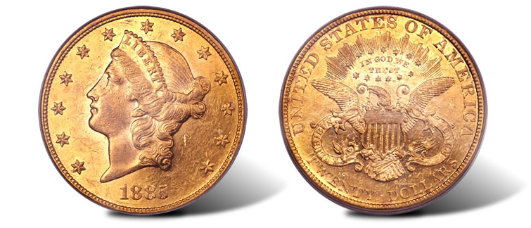 A classic gold rarity, in the form of an 1885 $20 MS61 PCGS, CAC, one of only 751 pieces struck – ranking among the lowest production totals in the entire regular-issue series of U.S. gold coinage – realized $80,500, while a 1920-S $20 MS62 PCGS, CAC, among the most elusive in the Saint-Gaudens series, realized $80,500.