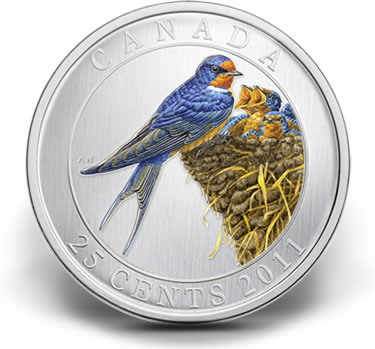 The enduring popularity of the Mint’s coloured 25-cent Birds of Canada coin series is sure to soar once again with the brilliant image of a female Barn Swallow feeding her young.
