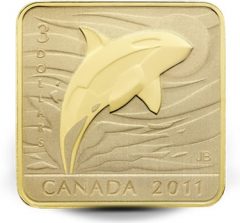The third issue in a four coin series which raises awareness of some of Canada’s most vulnerable wildlife species features the Orca Whale in a unique, square-shaped coin made of gold-plated sterling silver.