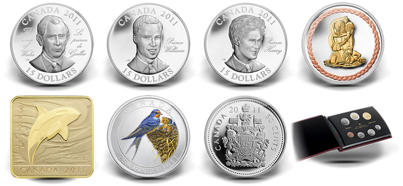 These appealing new coins include: the new $15 Sterling Silver Continuity of the Crown series; a $3 Fine Silver "Family Scene" coin; the Orca Whale coin from the $3 Sterling Silver Gold-Plated Wildlife Conservation Series; the "Barn Swallow" from the 25-Cent Coloured Birds of Canada series; the Elk Calf Young Wildlife Specimen Set and the classic 2011 50-Cent Circulation Coin Roll.