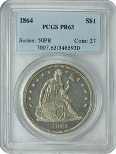 - 1864 Seated Silver Dollar PCGS Proof-63 (Item #6886)