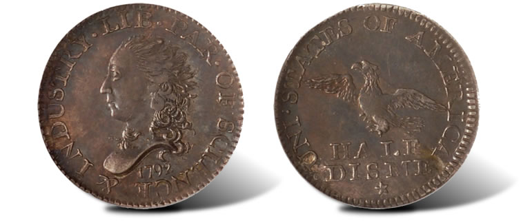 "Benjamin Franklin is credited with the design concept of the Continental Dollars and they were struck just a few weeks after the Declaration of Independence was signed. The 1792 Half Disme was authorized by President George Washington as the first official coin produced by the United States," explained Gillio.