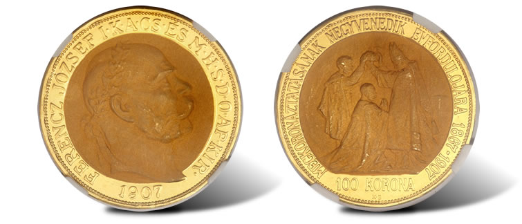Further world record prices were realized on a 1907 Hungarian Franz Joseph II gold 100 Korona, KM490, Proof 65, with provenance from the Eliasberg Collection NGC — one of the nicest examples of this impressive gold commemorative marking the 40th anniversary of the coronation of Franz Joseph II that Heritage has seen — which brought $25,300, while a 1915 Cuban Republic Peso, KM15.2, MS63 PCGS, went home with an advanced collector to the tune of $20,700.
