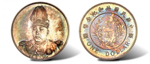 A 1928 Chinese "Auto Dollar" Year 17 KM-Y428, L&M-609, AU58 PCGS brought $74,750 — a record price for the type — as one of the top lots at the event which was held in conjunction with the Chicago International Coin Fair (CICF), an auction dominated by record prices on Chinese rarities. All prices include 15% Buyer’s Premium.