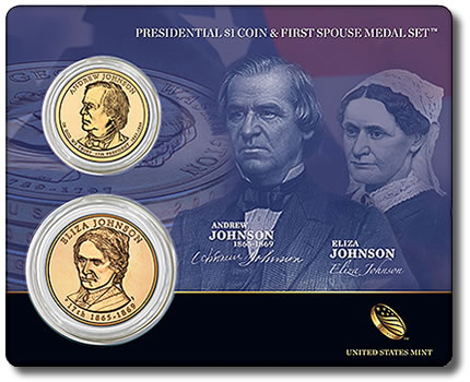First Spouse Gold Coins are issued in the same order as the circulating Presidential $1 Coins. The United States Mint released the Andrew Johnson $1 coin into circulation via Federal Reserve Banks across the nation on February 17, 2011. A set containing the Johnson Presidential $1 Coin and the Eliza Johnson bronze medal (the Johnson Presidential $1 Coin and First Spouse Medal Set) are scheduled for release next week on Tuesday, May 10.