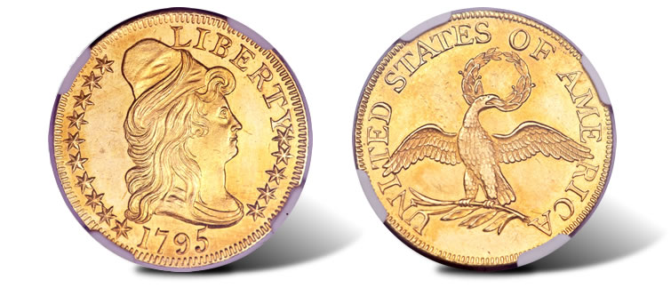 The 1795 half eagles with the Small Eagle reverse are of great historic importance as a group, for they were the first gold coins struck by the U.S. government under the authority of the Mint Act of April 2, 1792.
