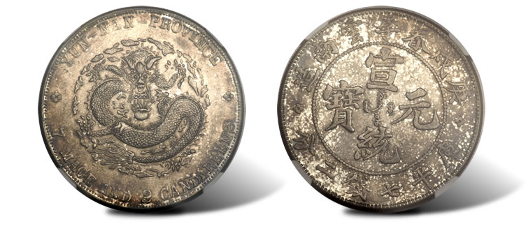 The legendary 1910 Chinese Dragon Dollar, called the Yunnan Spring Dollar in reference to the four Chinese characters that translate to "Spring 1910" on its reverse, could bring in excess of $1,000,000 as part of Heritage Auctions Sept. 8-9 Long Beach Signature® World & Ancient Coins Auction, at the Long Beach Convention Center.